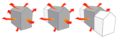 Pour un même volume chauffé avec des compositions de parois ainsi que des systèmes de chauffage et de ventilation identique, le certificat de la maison 4 façades présentera une consommation supérieure à celle de la maison 3 façades qui, elle-même sera supérieure à celle de la maison 2 façades.