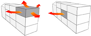 Pour les appartements, la logique et la même : tout autre chose étant identique, un appartement "exposé" ayant 4 parois en contact avec l'extérieur présentera une consommation d'énergie supérieure à un appartement "confiné" ayant seulement 2 parois de ce type.